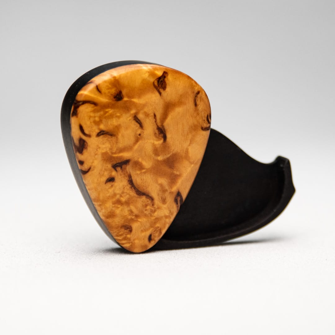 The most minimalist of my pick boxes is also the most complicated to make. Barely bigger than the plectrums it contains the pill is designed for 3 to 5 standard and smaller sized picks.